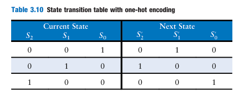 For example, a one-hot encoded FSM with three states would have state encodings of 001, 010, and 100.