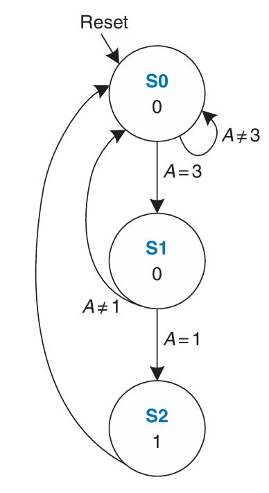 3.30(a)의 경우, 무어머신이므로 단순히 현재 State에 의해서 다음 State가 정해진다. S0이면 입력과 상관없이