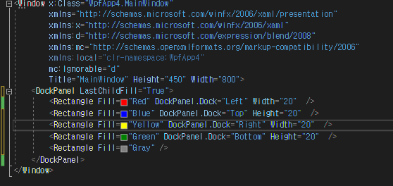 -DockPanel.Dock="Bottom" 이 함수는 어디에 배치할 것인지를 정한다.